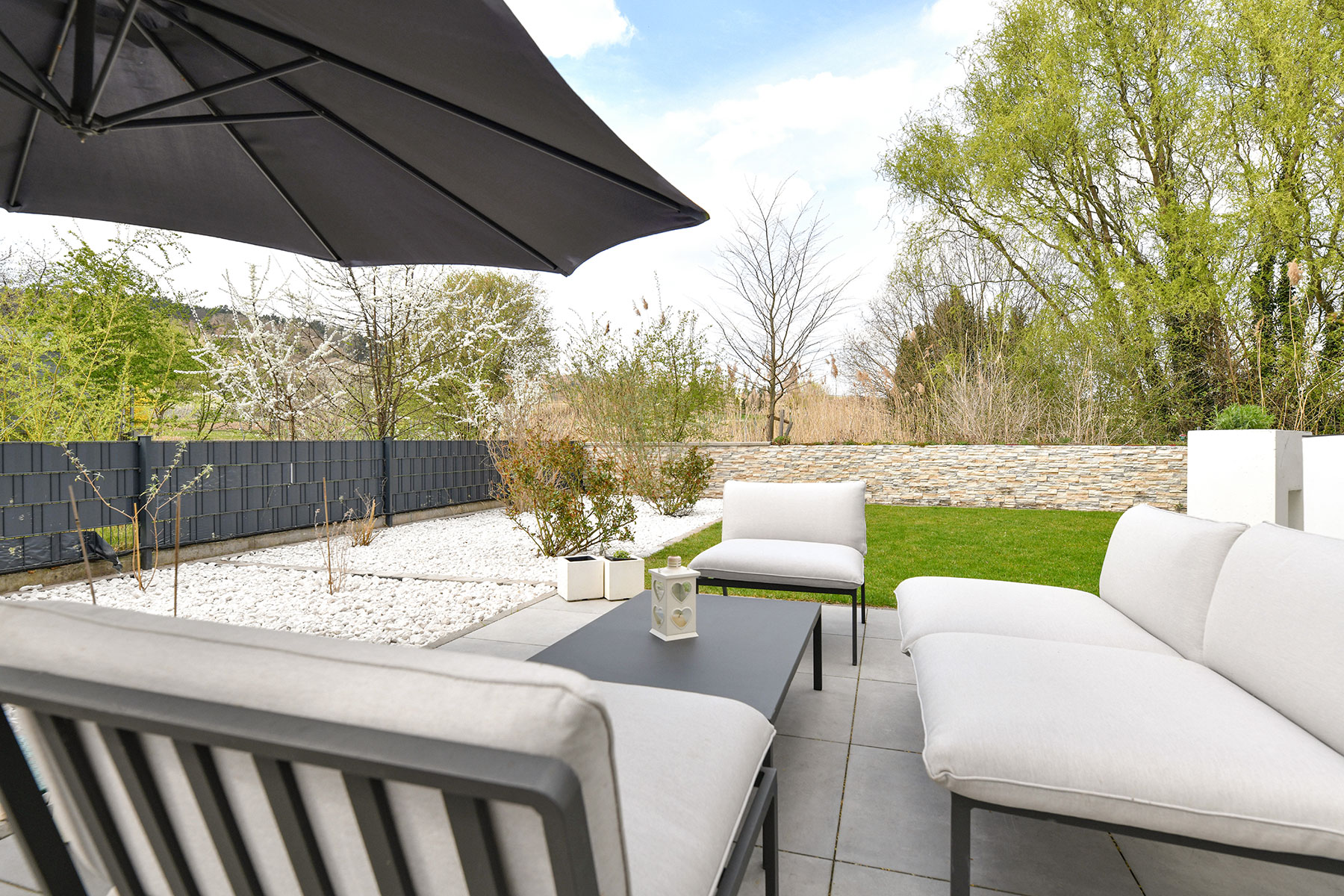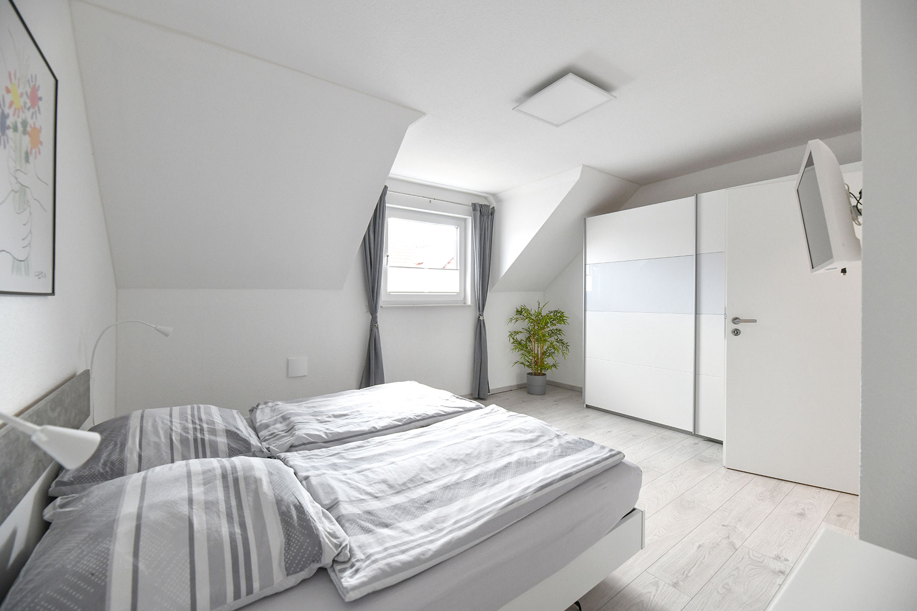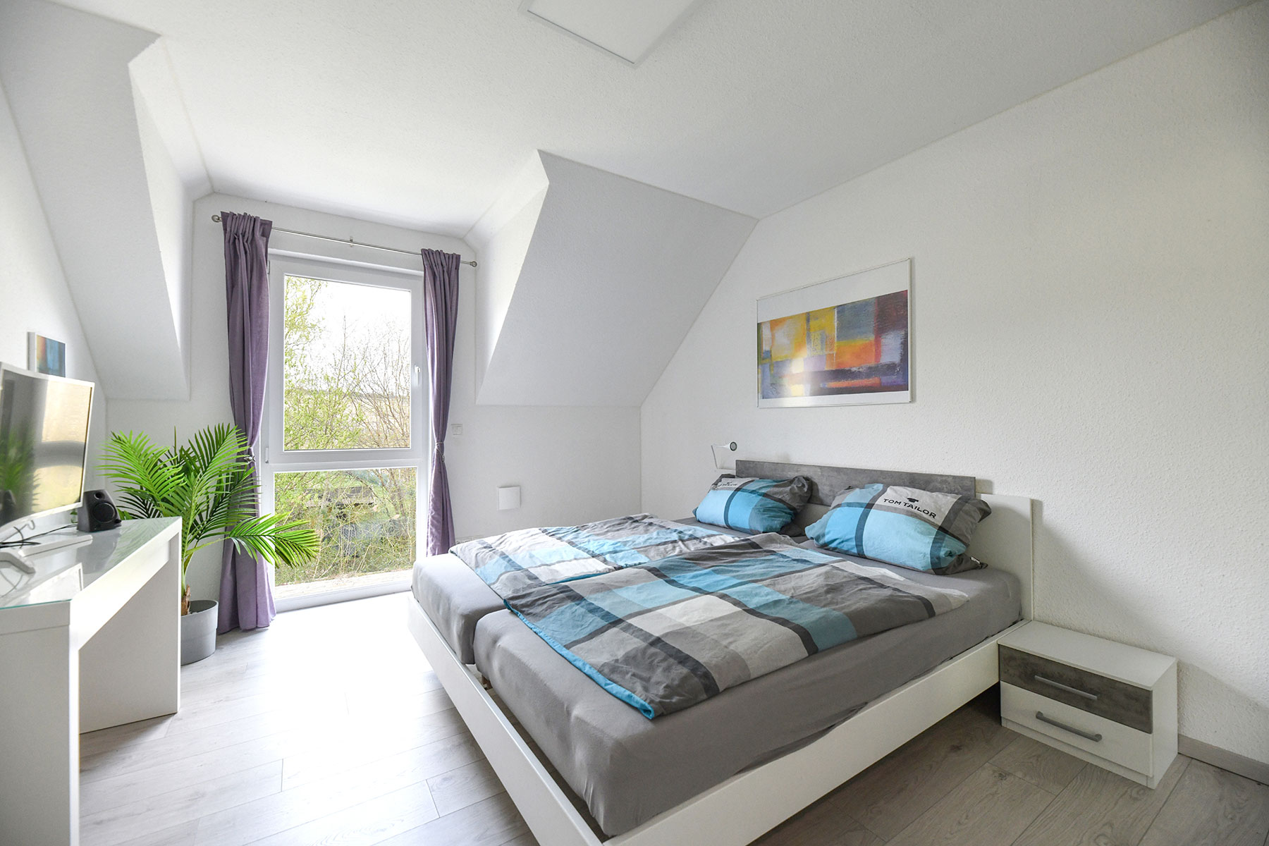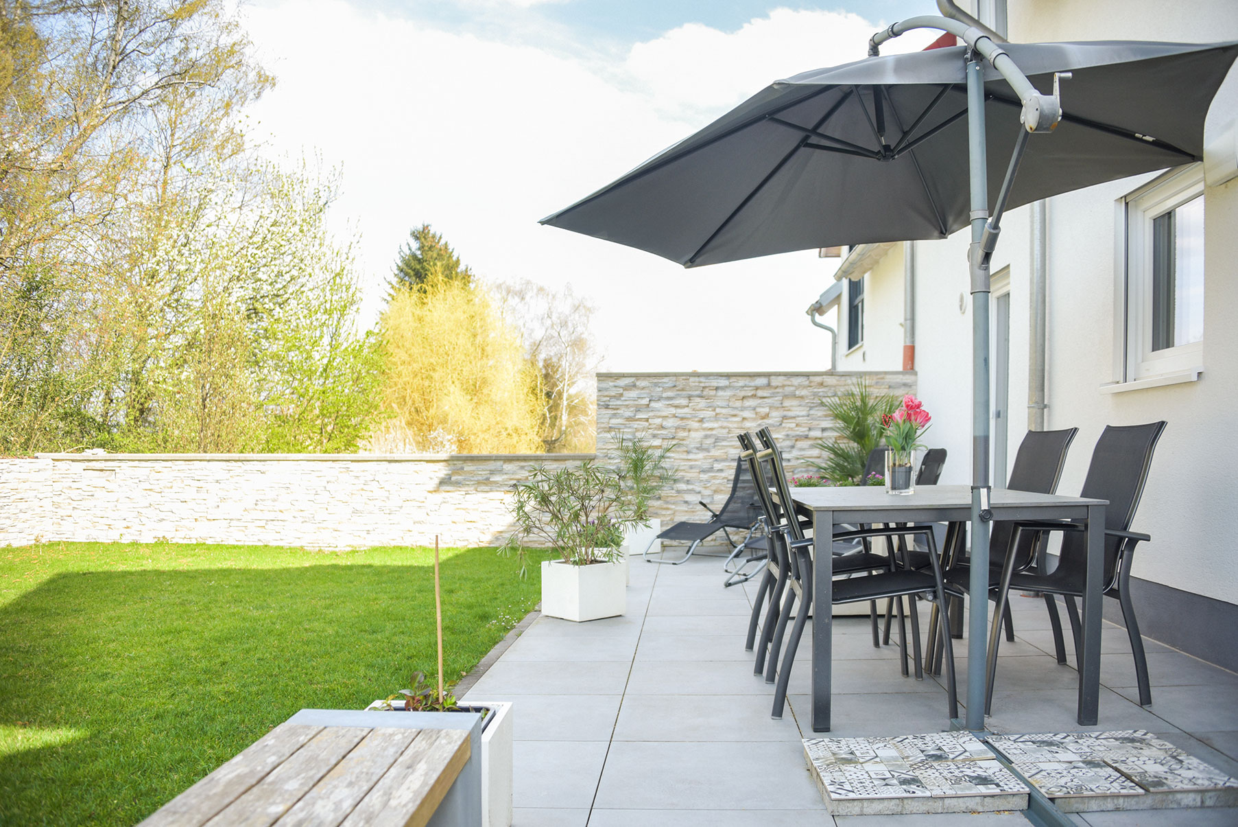Die beiden Schlafzimmer verfügen jeweils über hochwertige Doppelbetten mit Markenmatratzen und Hygieneauflagen, die Kleiderschränke bieten viel Platz. Bettwäsche ist vorhanden. Das Tageslichtbad mit großem Dachfenster verfügt neben WC und Waschtisch über eine bodentiefe Dusche und Badewanne. Handtücher sind ausreichend vorhanden, ebenso ein Föhn. Im Garten stehen für Sie Sitzgruppe, Essplatz und Liegestühle zum Entspannen und Verweilen bereit. Im Spätsommer lädt die wärmende Feuerschale zum Sundowner ein.